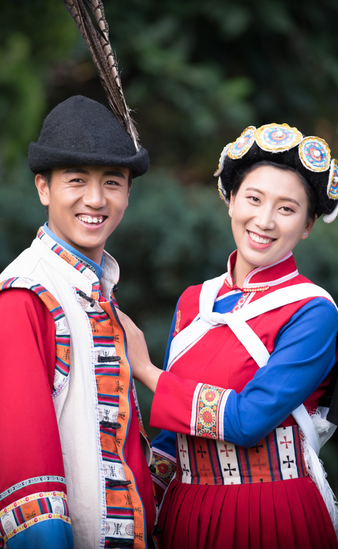 彝族在云南境內(nèi)約471萬人,是省內(nèi)人口最多、分布最廣的少數(shù)民族,主要聚居在金沙江、元江流域和哀牢山、無量山腹地。彝族是一個(gè)能歌善舞的民族,民間打歌、跳樂之風(fēng)盛行,大三弦、跌腳舞久負(fù)盛名。火把節(jié)是彝族最具特色的民族節(jié)日。彝族村占地50余畝,三虎浮雕墻與虎頭內(nèi)祖師形象表現(xiàn)了彝族虎鷹文化。太陽歷廣場圖騰柱上有太陽、虎、火和八卦圖形象,周圍環(huán)繞著10個(gè)朝向不同的月球造型,外圓周有12生肖石雕。依山而建的“...